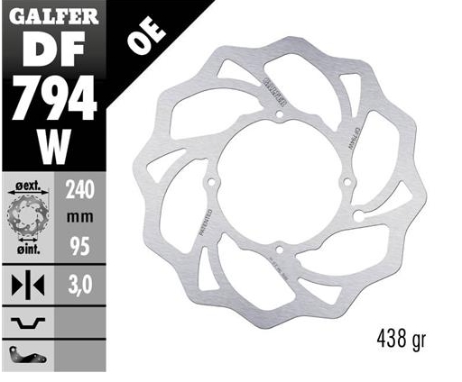 Disco de freno Galfer DF794W Wave Fijo 240x3mm. Descubre la excelencia en rendimiento y seguridad con los discos de freno Galfer Wave Fijos. Diseñados para ofrecer una frenada potente y consistente, los discos de freno Galfer Wave Fijos son la elección perfecta para los motociclistas que buscan lo mejor en tecnología de frenado.