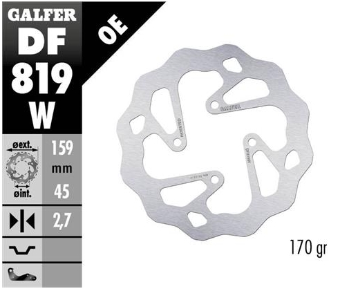 Disco de freno Galfer DF819W Wave Fijo 159.5x2.7mm. Descubre la excelencia en rendimiento y seguridad con los discos de freno Galfer Wave Fijos. Diseñados para ofrecer una frenada potente y consistente, los discos de freno Galfer Wave Fijos son la elección perfecta para los motociclistas que buscan lo mejor en tecnología de frenado.