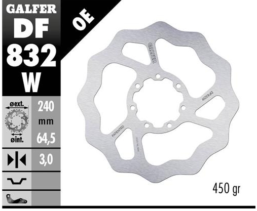 Disco de freno Galfer DF832W Wave Fijo 240x3mm. Descubre la excelencia en rendimiento y seguridad con los discos de freno Galfer Wave Fijos. Diseñados para ofrecer una frenada potente y consistente, los discos de freno Galfer Wave Fijos son la elección perfecta para los motociclistas que buscan lo mejor en tecnología de frenado.