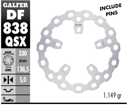 Disco de freno Galfer DF838QSX Fijo Cubiq Super Sobre medida 330x5mm