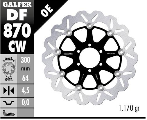 Disco de freno Galfer DF870CW Wave Flotante Completo Nucleo Aluminio 300mm