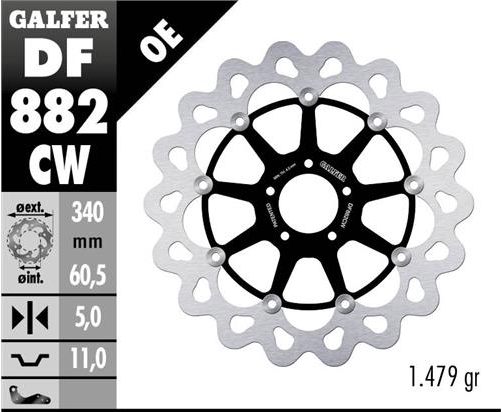 Disco de freno Galfer DF882CW Wave Flotante Completo Nucleo Aluminio 340mm. Descubre la máxima tecnología en sistemas de frenado con los discos de freno Galfer Wave Flotantes. Estos discos de freno están diseñados para ofrecer un rendimiento superior, combinando potencia de frenado y una excelente capacidad de disipación del calor, ideales para los motociclistas que exigen lo mejor en sus rutas.