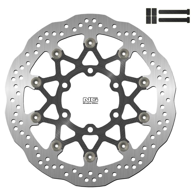 Disco de freno NG 1642XGK32 Ondulado Flotante Kit oversize 320 / Referencia NG: 1642XGK32. Los discos de freno NG se fabrican con materiales de primera calidad y maquinaria de última tecnología, consiguiendo con ello que los discos estén a la vanguardia de los sistemas actuales de frenado de las mejores motocicletas, ciclomotores y quads. Los discos de freno NG son utilizados por las primeras marcas mundiales y se venden en más de 17 países. Precio unitario.