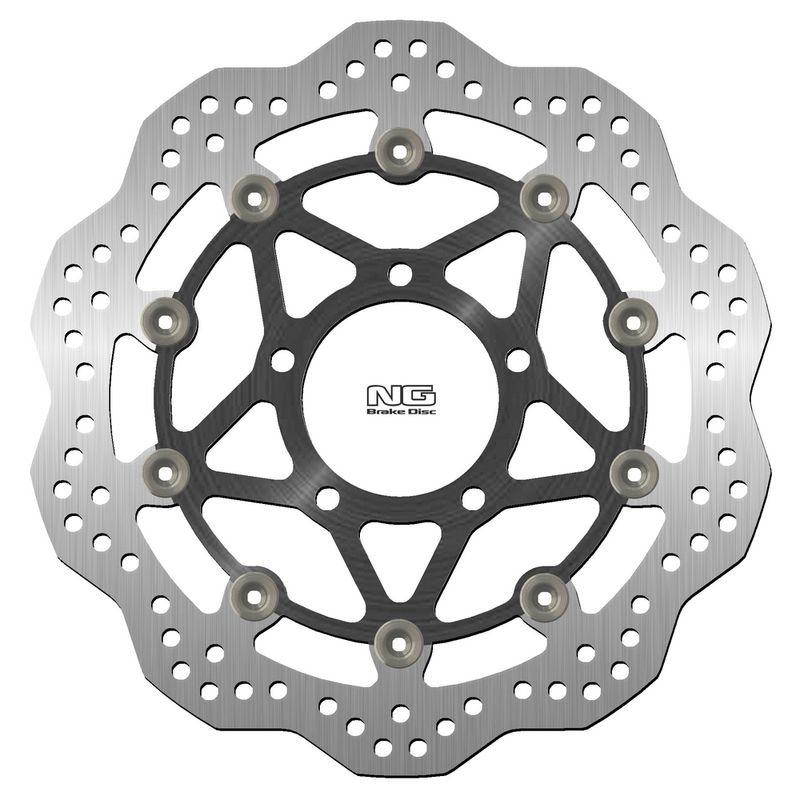 Disco de freno NG 1695XG Ondulado Flotante / Referencia NG: 1695XG. Los discos de freno NG se fabrican con materiales de primera calidad y maquinaria de última tecnología, consiguiendo con ello que los discos estén a la vanguardia de los sistemas actuales de frenado de las mejores motocicletas, ciclomotores y quads. Los discos de freno NG son utilizados por las primeras marcas mundiales y se venden en más de 17 países. Precio unitario.
