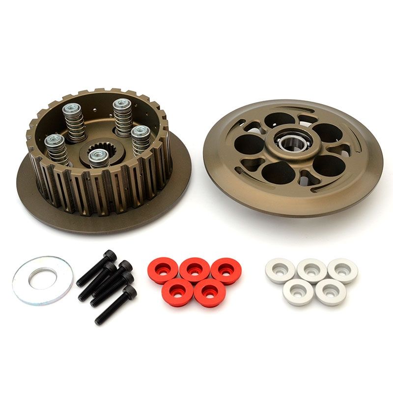 Fabricados con una aleación de alta calidad, similar a la utilizada en la industria aeroespacial, estos embragues garantizan una durabilidad y resistencia extraordinarias. Además, todas las partes de aleación están recubiertas con anodizado, ya sea para un impactante efecto visual o para incrementar la resistencia en las partes más sometidas a desgaste.