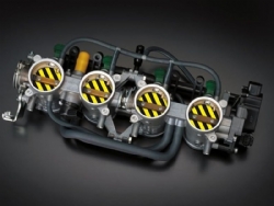 Emulador de la mariposa secundaria Healtech STVE-03. Es común quitar el actuador de la válvula de mariposa secundaria (STVA) en algunas motos Suzuki para aumentar el rendimiento o debido al fallo del servomotor. La ECU detecta la ausencia del servomotor e indica el error correspondiente en el cuadro. El emulador simplemente se conecta al conector STVA original para que la ECU no detecte la ausencia del STVA y así se quite la indicación del error. La imagen mostrada es genérica.