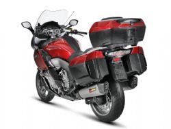 Silencioso de escape Akrapovic Slip-On S-B16SO2-HZAAT Bmw K 1600 GT/GTL 2011/18. El Slip-On Akrapovic S-B16SO2-HZAAT se ha diseñado específicamente para cada modelo de moto y gracias a su diseño de vanguardia, ofrece un sonido característico con las máximas prestaciones que un silencioso de escape puede ofrecer. La funda exterior está realizada en titanio o carbono (según modelo) muy resistente y ligero. Con el montaje del silencioso de escape Slip-On Akrapovic S-B16SO2-HZAAT, se consigue también una notable reducción del peso respecto al escape original de la moto. El sistema de escape cumple con las regulaciones EURO3. Compatible con las maletas originales de Bmw.