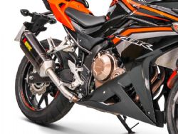 Silencioso de escape Akrapovic Slip-On S-H5SO3-HRC. El Slip-On Akrapovic S-H5SO3-HRC se ha diseñado específicamente para cada modelo de moto y gracias a su diseño de vanguardia, ofrece un sonido característico con las máximas prestaciones que un silencioso de escape puede ofrecer. La funda exterior está realizada en titanio o carbono (según modelo) muy resistente y ligero. Con el montaje del silencioso de escape Slip-On Akrapovic S-H5SO3-HRC, se consigue también una notable reducción del peso respecto al escape original de la moto.