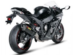Escape completo Akrapovic S-K10E2-ZC Modelo Evolution Line Kawasaki ZX 10 R 2011-2012. Diseñado especialmente para cada modelo de moto, el escape completo Akrapovic S-A10E8-RC Evolution se caracteriza por el excelente rendimiento que ofrece en la moto y por su peso increíblemente ligero. Este escape completo posee los colectores en titanio, rebaja sustancialmente el peso total respecto al escape original y es el producto más avanzado tecnológicamente de Akrapovic. El escape completo Akrapovic S-A10E8-RC también aporta una notable mejora en cuanto a prestaciones de motor se refiere. No es de extrañar que numerosos equipos de SBK, CEV u otros campeonatos del más alto nivel, confien en el escape Akrapovic Evolution. El Slip-On o silencioso está realizado en en fibra de carbono o titanio (segun cada versión). La copa final está realizada con el mejor carbono para aportar ligereza y la máxima resistencia.