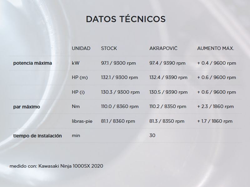 Datos técnicos escape Akrapovic S-K10SO24-HRT:
