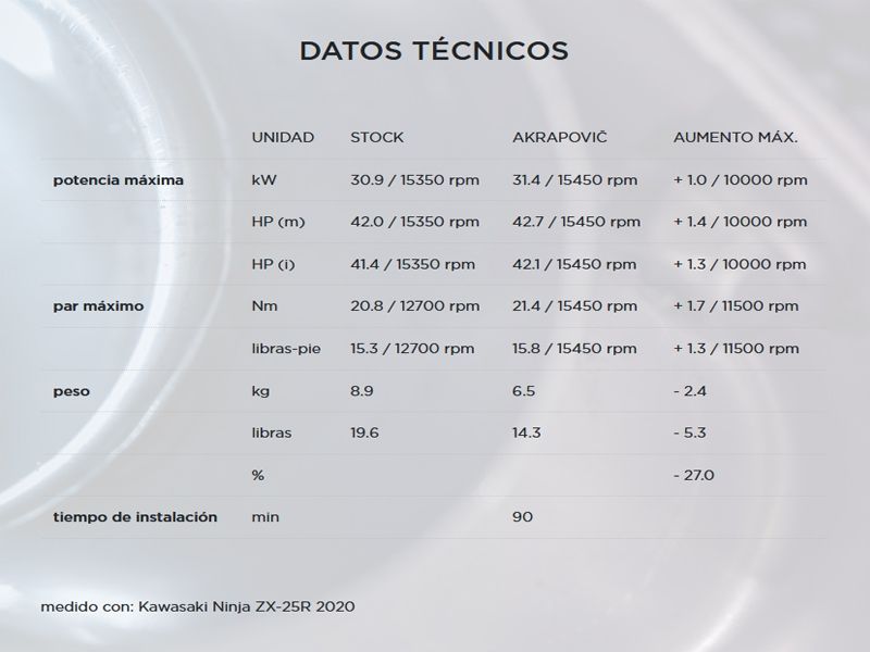 Datos técnicos escape Akrapovic S-K2R2-HAPC: