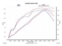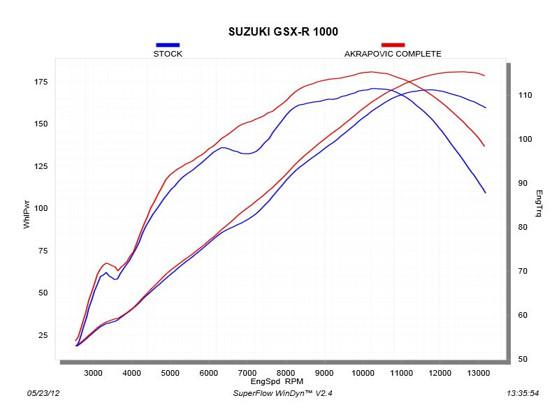 Escape completo Akrapovic S-S10R10-RC Modelo Racing Line Suzuki GSX R 1000 2014. Diseñado especialmente para cada modelo de moto, el escape completo Akrapovic S-S10R10-RC se caracteriza por el excelente rendimiento que ofrece en la moto y por su peso ligero. La versión de escape Racing Line posee los colectores en acero inoxidable. Este escape completo rebaja sustancialmente el peso total respecto al escape original. El escape completo Akrapovic S-S10R10-RC también aporta una notable mejora en cuanto a prestaciones de motor se refiere. El Slip-On está realizado en en fibra de carbono o titanio (según versión de escape) al igual que la copa final que también es de carbono.