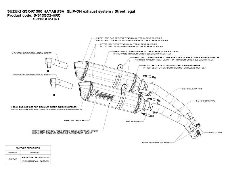 Silencioso de escape Akrapovic Slip-On S-S13SO2-HRC. El Slip-On Akrapovic S-S13SO2-HRC se ha diseñado específicamente para cada modelo de moto y gracias a su diseño de vanguardia, ofrece un sonido característico con las máximas prestaciones que un silencioso de escape puede ofrecer. La funda exterior está realizada en titanio o carbono (según modelo) muy resistente y ligero. Con el montaje del silencioso de escape Slip-On Akrapovic S-S13SO2-HRC, se consigue también una notable reducción del peso respecto al escape original de la moto.