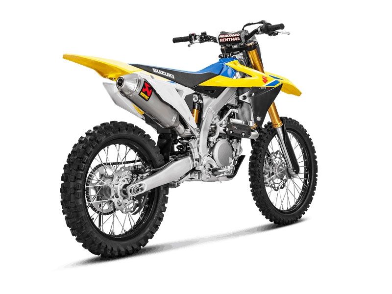Escape completo Akrapovic S-S4MET11-BNTA Suzuki RM-Z 450 2018 Modelo Evolution Line. Se trata del modelo más alto de gama de escapes Akrapovic. El escape Akrapovic S-S4MET11-BNTA de la gama Evolution es utilizado y probado por los mejores equipos de carreras de motocross. Cada escape es único y su objetivo es maximizar el rendimiento del motor al tiempo que reducir el peso total para así mejorar la conducción de la motocicleta. Fabricados enteramente en titanio, este escape cumple con los límites de sonido de la Federación Internacional de Motociclismo (FIM). Incorpora un soporte soldado más resistente y una tapa final en titanio. Además cuenta un nuevo revestimiento en el tubo exterior del silenciador para así tener mayor resistencia a los arañazos y facilitar su limpieza.