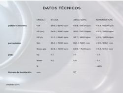 - Potencia: +.0.4 a 8870 RPM.