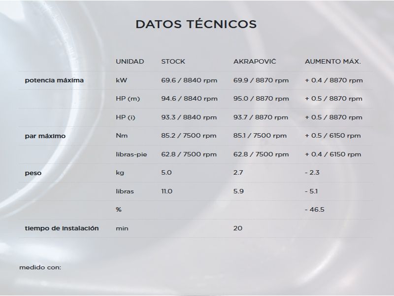 Datos técnicos escape Akrapovic S-T9SO3-HRT: