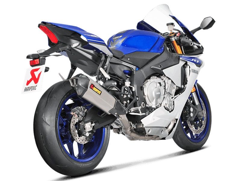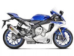 Escape completo Akrapovic S-Y10R13-HX2T Modelo Racing Line Yamaha YZF R1 2015/2016. Diseñado especialmente para cada modelo de moto, el escape completo Akrapovic S-Y10R13-HX2T se caracteriza por el excelente rendimiento que ofrece en la moto y por su peso ligero. La versión de escape Racing Line posee los colectores en acero inoxidable. Este escape completo rebaja sustancialmente el peso total respecto al escape original. El escape completo Akrapovic S-Y10R13-HX2T también aporta una notable mejora en cuanto a prestaciones de motor se refiere. El Slip-On está realizado en en fibra de carbono o titanio (según versión de escape) al igual que la copa final que también es de carbono.