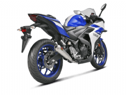 Escape completo Akrapovic S-Y2R1-CUBSS Modelo Racing Line. Diseñado especialmente para cada modelo de moto, el escape completo Akrapovic S-Y2R1-CUBSS se caracteriza por el excelente rendimiento que ofrece en la moto y por su peso ligero. La versión de escape Racing Line posee los colectores en acero inoxidable. Este escape completo rebaja sustancialmente el peso total respecto al escape original. El escape completo Akrapovic S-Y2R1-CUBSS también aporta una notable mejora en cuanto a prestaciones de motor se refiere. El Slip-On está realizado en en fibra de carbono o titanio (según versión de escape) al igual que la copa final que también es de carbono.