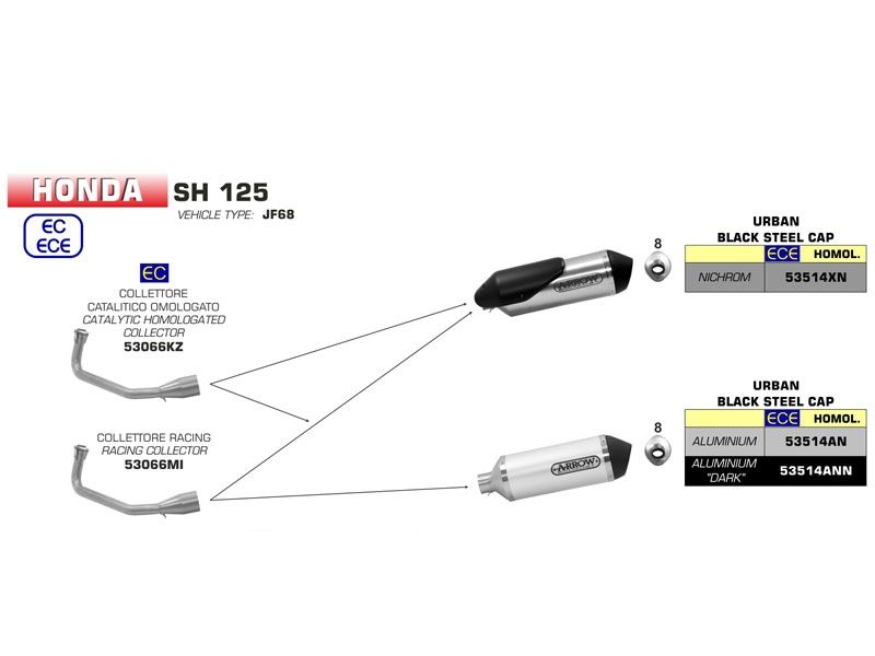 Silencioso escape Arrow 53514ANN Urban (Aluminio Dark copa negra) Honda Sh 125 / 150 2017. Arrow Urban es el predecesor del Reflex 2.0 e introduce como novedades más destacadas, el escape racing corto en forma de diamante con catalizador opcional, interiores rediseñados y el terminal en color negro. El escape Arrow Urban está realizado en aleación de acero inoxidable y gracias a su elaborado diseño, aporta unas prestaciones óptimas, un sustancial rebaja del peso y un sonido distintivo de Arrow. (La información que facilita Ramirez Motoracing es orientativa y sujeta a la verificación en la web del fabricante).