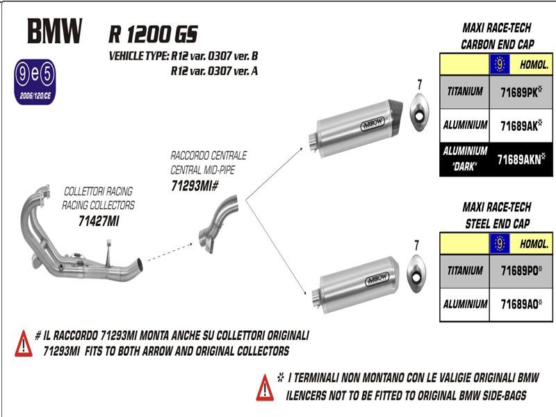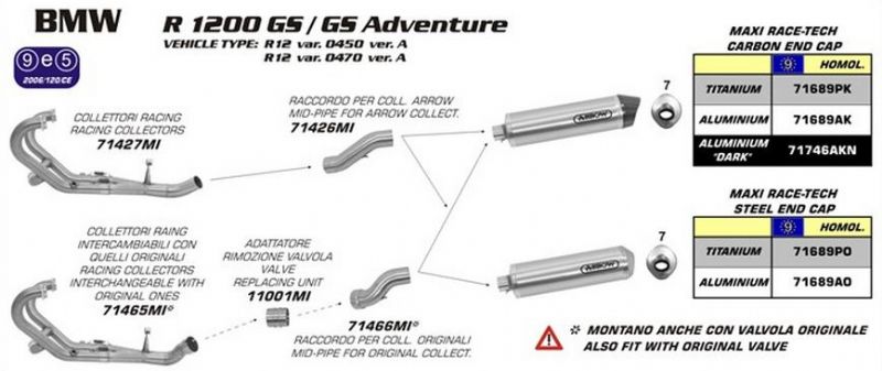 ARROW MAXI RACE-TECH BMW R 1200 GS/ ADVENTURE 2004/2009 SILENCIOSO HOMOLOGADO EN ALUMINIO NEGRO CON COPA DE CARBONO REF: 71689AKN.