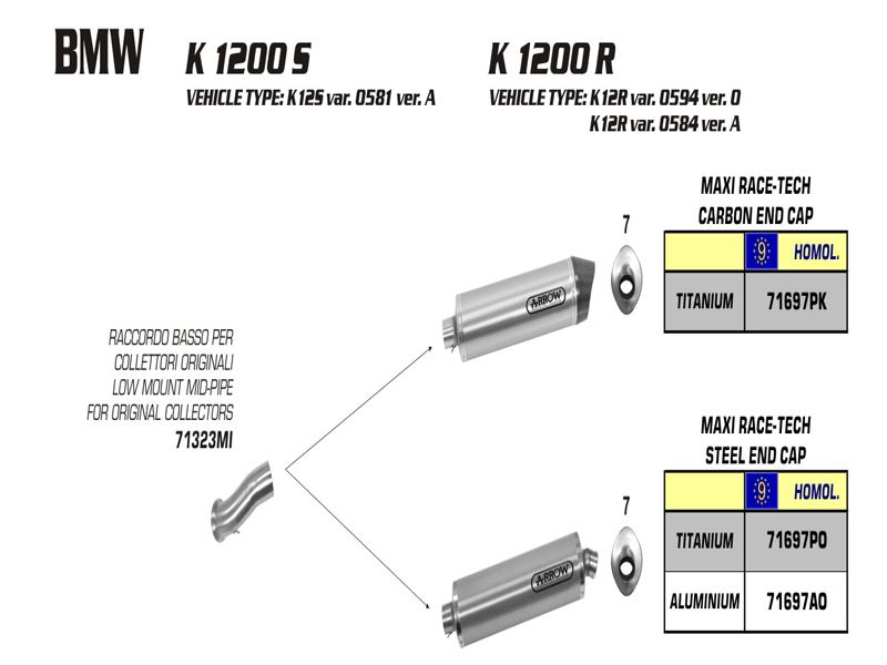 ARROW MAXI RACE-TECH BMW K 1200 S/ R 2005/2008 SILENCIOSO HOMOLOGADO EN TITANIO CON COPA DE CARBONO REF: 71697PK.