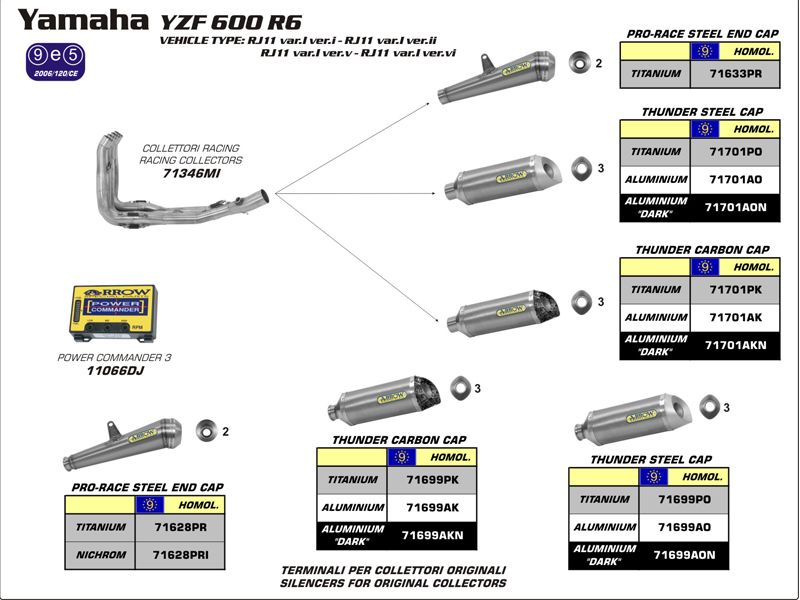 Debido a la complejidad de los productos Arrow, es muy importante verificar con la web del fabricante si es necesario o no el conector o colector para el montaje del silencioso. Debes saber que una línea continua en el esquema indica que este artículo es obligado. Por el contrario si la línea es discontinua, el montaje será opcional.