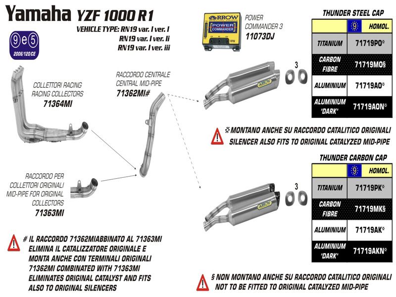 Debido a la complejidad de los productos Arrow, es muy importante verificar con la web del fabricante si es necesario o no el conector o colector para el montaje del silencioso. Debes saber que una línea continua en el esquema indica que este artículo es obligado. Por el contrario si la línea es discontinua, el montaje será opcional.