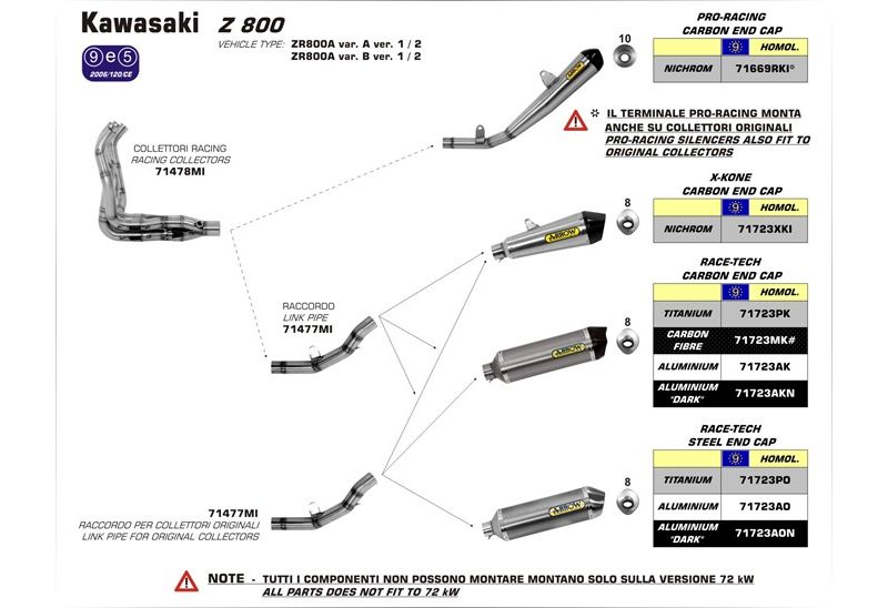 COLECTOR RACING Z 800 E (OPCIONAL) Opcional para el montaje del silencioso. El colector solo se podra montar con el silencioso Arrow. |