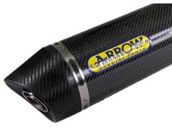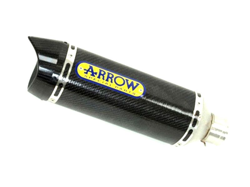 Silencioso escape Arrow %referencia% Race-Tech (carbono copa acero carbono). El silencioso Arrow %referencia% Race-Tech ha sido el primer escape fabricado en forma de diamante que ha sustituido a los escapes tradicionales de forma cilíndrica. Con esta nueva forma Arrow ha podido reducir las medidas de la forma tradicional, aunque manteniendo los mismos esquemas. Con este nuevo escape, Arrow ha conseguido disminuir el peso sin afectar el volumen interno, conservando los niveles de ruido. El cuerpo principal del silencioso Arrow %referencia% Race-Tech está realizado en carbono muy ligero y robusto. La terminación de la copa posterior está realizada en fibra de carbono de la mejor calidad. Para compensar la reducción del volumen, Arrow ha trabajado arduamente en la investigación de los mejores materiales fonoabsorbentes y termo aislantes. Se han realizado innumerables pruebas en pista y en el Departamento de Investigación y Desarrollo que le han permitido a Arrow introducir materiales y tecnologías nuevas más eficaces en el proceso de producción. Homologados por la UE. El Db-killer es completamente extraíble de forma sencilla y rápida. (La información que facilita Ramirez Motoracing sobre el silencioso %referencia% es orientativa y sujeta a la verificación en la web del fabricante).