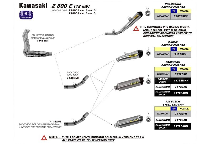 Debido a la complejidad de los productos Arrow, es muy importante verificar con la web del fabricante si es necesario o no el conector o colector para el montaje del silencioso. Debes saber que una línea continua en el esquema indica que este artículo es obligado. Por el contrario si la línea es discontinua, el montaje será opcional.