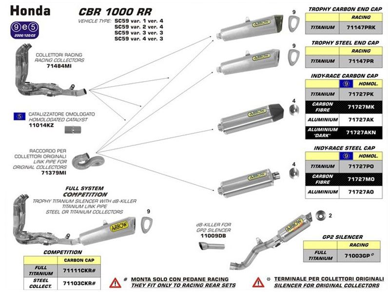 Debido a la complejidad de los productos Arrow, es muy importante verificar con la web del fabricante si es necesario o no el conector o colector para el montaje del silencioso. Debes saber que una línea continua en el esquema indica que este artículo es obligado. Por el contrario si la línea es discontinua, el montaje será opcional.