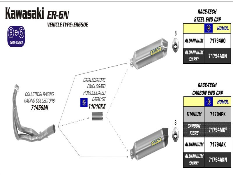 ARROW RACE-TECH KAWASAKI ER-6N 2012 SILENCIOSO HOMOLOGADO EN ALUMINIO NEGRO CON COPA DE CARBONO REF: 71794AKN.