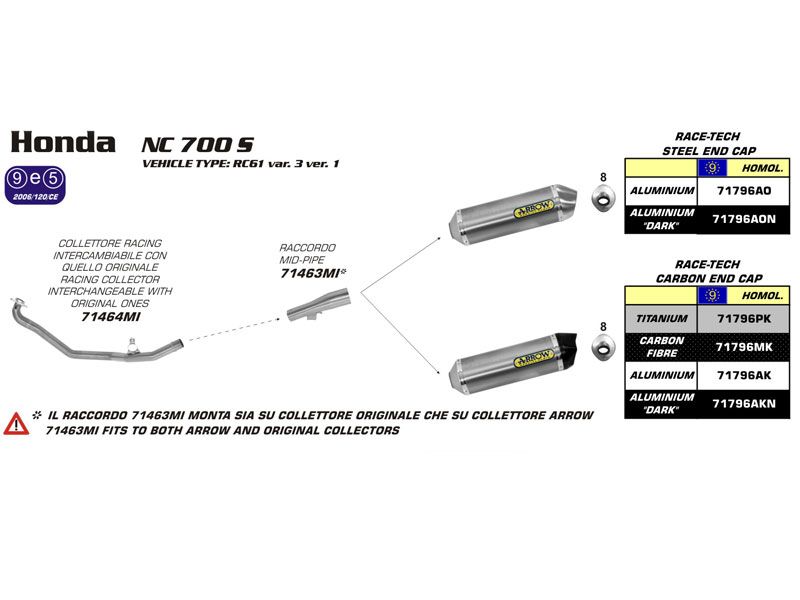 ARROW RACE-TECH HONDA NC 700/750 D INTEGRA 2012/2013-NC 700 S 2012/2013-NC 700 X 2012/2013-INTEGRA 750 DCT 2014 SILENCIOSO HOMOLOGADO EN ALUMINIO CONVENCIONAL CON COPA DE ACERO INOX REF: 71796AO.