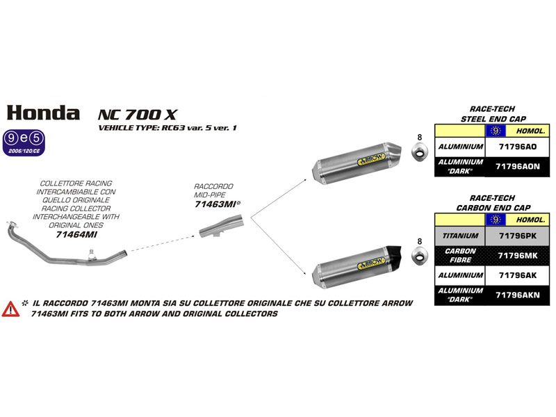 ARROW RACE-TECH HONDA NC 700/750 D INTEGRA 2012/2013-NC 700 S 2012/2013-NC 700 X 2012/2013- INTEGRA 750 DCT 2014 SILENCIOSO HOMOLOGADO EN ALUMINIO NEGRO CON COPA DE ACERO INOX REF: 71796AON.