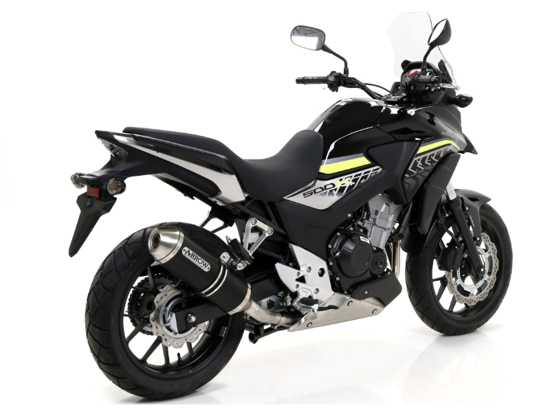 Silencioso escape Race-Tech Arrow 71804AON Honda CB 500 X/ f / CBR 500 R Aluminio Dark. El slip-on escape Arrow Race-Tech 71804AON se caracteriza por su diseño en forma de diamante que garantiza una disminución del peso, sin afectar el volumen interno ni los niveles de ruído. Realizado interiormente en acero inox con la funda exterior en aluminio plata, cuenta con el terminal en acero inoxidable y dB-killer extraíble.