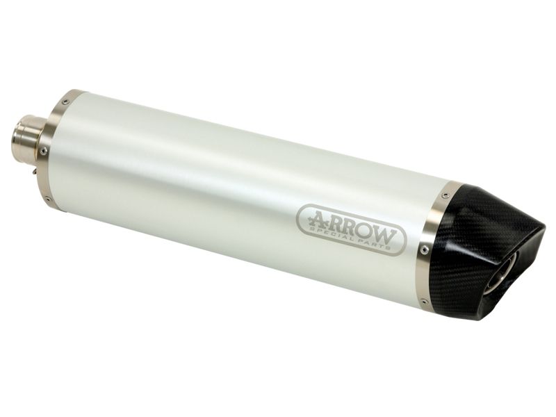 Silencioso escape Arrow 71809AK Maxi Race-Tech Aluminio. El silencioso de escape Arrow 71809AK Maxi Race-Tech posee las mismas características que el Race-Tech pero la sección del corte es más grande. Su diseñado está pensado para motos de alta cilindrada con un solo silencioso. Una característica importante es que reduce el ruido y el flujo de gases es más dinámico. El cuerpo principal del silencioso Arrow 71809AK está fabricado en carbono, titanio o aluminio (según la versión). Para compensar la reducción del volumen, Arrow ha trabajado arduamente en la investigación de los mejores materiales fonoabsorbentes y termo aislantes. (La información que facilita Ramirez Motoracing sobre el silencioso 71809AK es orientativa y sujeta a la verificación en la web del fabricante).