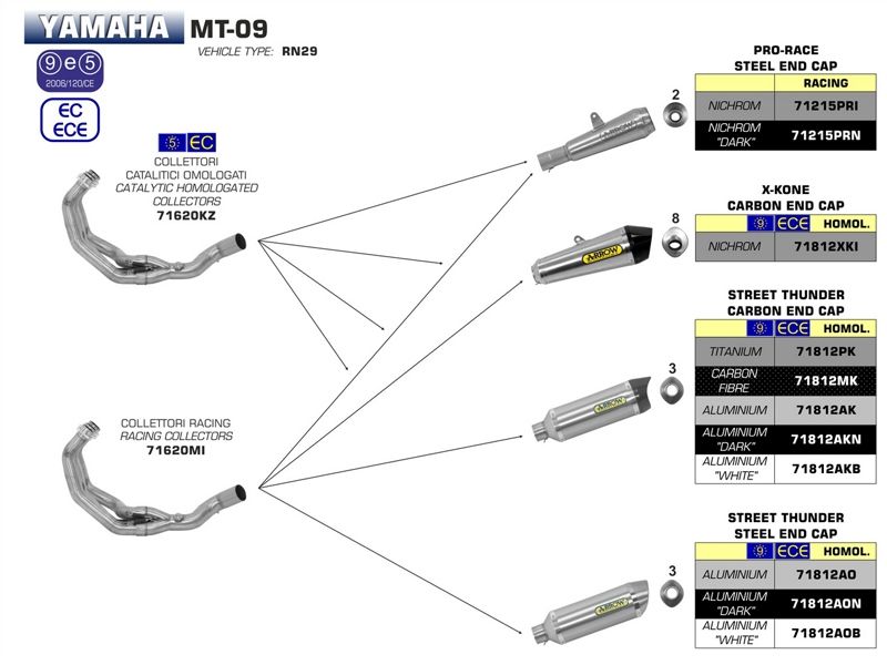 Pack ahorro Arrow escape específico para Yamaha MT-09 2013-2020. El pack incluye colector y silencioso (modelo a elegir).