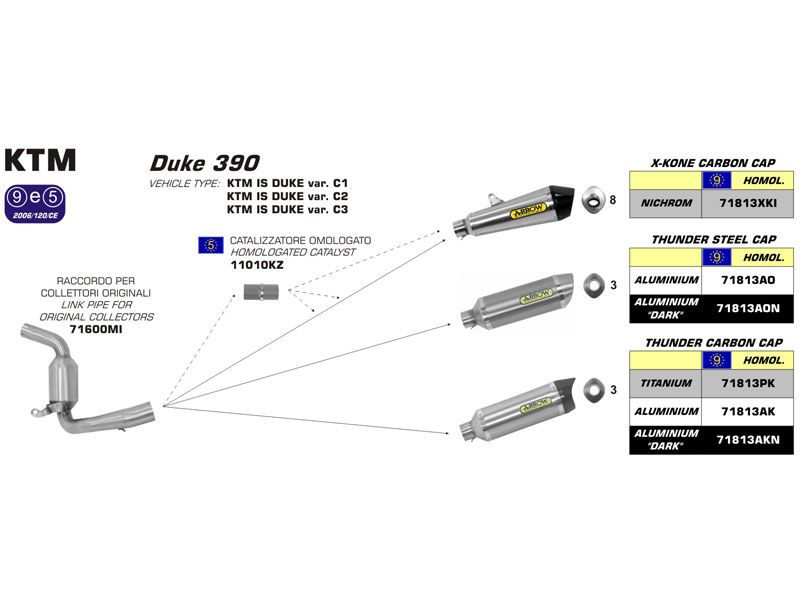 Debido a la complejidad de los productos Arrow, es muy importante verificar con la web del fabricante si es necesario o no el conector o colector para el montaje del silencioso. Debes saber que una línea continua en el esquema indica que este artículo es obligado. Por el contrario si la línea es discontinua, el montaje será opcional.