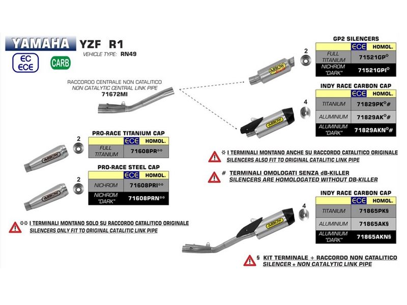 Silencioso escape Arrow 71829PK Yamaha R1 2015 / 2018 Indy Race (titanio copa carbono). El silencioso Arrow 71829PK Indy Race nace para poder satisfacer la demanda de muchas motos las cuales por su diseño, no se les puede instalar ningun silencioso Arrow. Se caracteriza por su forma ovalada, un poco más aplastado con respecto a otros silencioso de escape, aunque sigue manteniendo un buen volumen interno favoreciendo así la reduccion del ruido. El cuerpo del silencioso está disponible en titanio, aluminio o fibra de carbono (según modelo). Para la terminación de la copa posterior se ha utilizado carbono de alta calidad. (La información que facilita Ramirez Motoracing es orientativa y sujeta a la verificación en la web del fabricante).