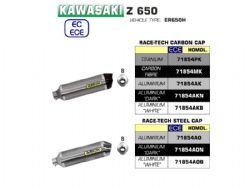 Escape Arrow 71854AK Race-Tech Kawasaki Z650 2017-2020. El silencioso Arrow Race-Tech 71854AK se caracteriza por su diseño en forma de diamante que garantiza una disminución del peso, sin afectar el volumen interno ni los niveles de ruído. Realizado interiormente en acero inox con la funda exterior en diferentes materiales (titanio, carbono o aluminio según modelo), cuenta con el terminal (copa final) en carbono y dB-killer extraíble. (La información que facilita Ramirez Motoracing es orientativa y sujeta a la verificación en la web del fabricante).