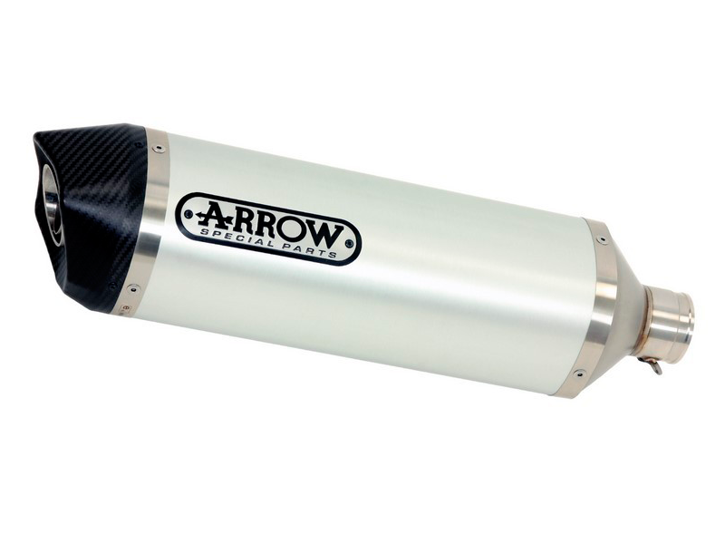 Silencioso escape Arrow 71855AK Race-Tech Aluminio copa carbono. El silencioso de escape Arrow 71855AK Race-Tech se caracteriza por su diseño en forma de diamante que garantiza una disminución del peso, sin afectar el volumen interno ni los niveles de ruído. Realizado interiormente en acero inox con la funda exterior en aluminio plata, cuenta con el terminal en aluminio y dB-killer extraíble. (La información que facilita Ramirez Motoracing es orientativa y sujeta a la verificación en la web del fabricante).