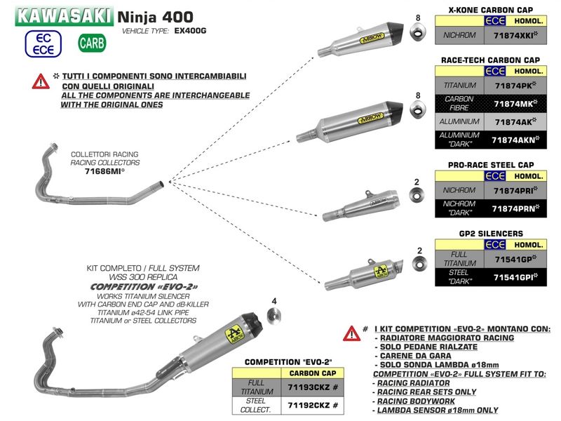 Silencioso escape Arrow 71874AKN Kawasaki Z 400 19 Race-Tech Aluminio Dark copa carbono. El silencioso Arrow Race-Tech 71874AKN se caracteriza por su diseño en forma de diamante que garantiza una disminución del peso, sin afectar el volumen interno ni los niveles de ruído. Realizado interiormente en acero inox con la funda exterior en aluminio dark, cuenta con el terminal (copa final) en carbono y dB-killer extraíble.