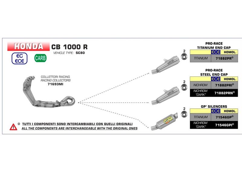 Silencioso escape Arrow 71882PRI Honda CB 1000 R 2018 Pro-Race Nichrom. silencioso de escape Arrow 71882PRI deriva directamente de los escapes de Moto Gp con forma de trompeta. Este silencioso no es posible adaptarlo a todos los modelos de moto debido al modelo del terminal y a que al tener poco volumen interno, se limita el mantener el nivel del ruido bajo control. Al tener forma de cono, el silencioso Arrow 71882PRI se sujeta al marco con unos puntos de soldadura, por lo que no se puede emplear abrazaderas de carbono o acero inox como en los otros silenciosos. El cuerpo principal del silencioso Arrow 71882PRI está fabricado en Nichrom. Para compensar la reducción del volumen, Arrow ha trabajado arduamente en la investigación de los mejores materiales fonoabsorbentes y termo aislantes. Se han realizado innumerables pruebas en pista y en el Departamento de Investigación y Desarrollo que le han permitido a Arrow introducir materiales y tecnologías nuevas más eficaces en el proceso de producción. Estos silenciosos los encontramos en version racing y homologada con Db-killer. (La información que facilita Ramirez Motoracing es orientativa y sujeta a la verificación en la web del fabricante).