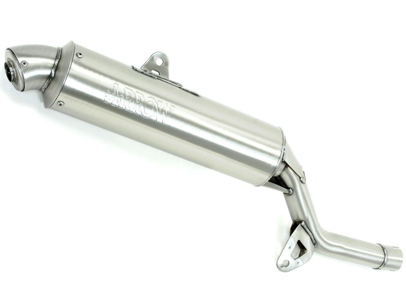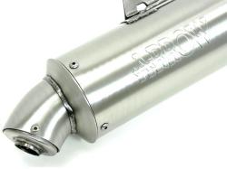 Silencioso escape Arrow 72605PD París Dakar Réplica. La línea de producto París Dakar Réplica es un hito de la producción Arrow en motos de campo que después de años enteros de éxitos comerciales, están todavía a la cabeza de las preferencias de los apasionados del enduro y del rally. Efectivamente, unen una excelente confianza determinada por la construcción totalmente artesanal en acero inoxidable y por los montajes realizados sobre una plantilla mediante soldaduras manuales T.I.G. y M.I.G. El cuerpo del silenciador del tubo de escape Arrow 72605PD París Dakar es de sección circular con el terminal fijado mediante tornillos para facilitar el montaje y desmontaje del mismo y el cambio a un material de alta calidad que absorbe los ruidos. En la parte final va colocado un cartucho suplementario que se puede quitar con gran facilidad y que reduce aún más el ruido. Esta línea ofrece un incremento importante de las prestaciones a bajo y medio régimen, con una notable mejoría incluso de la potencia y un ahorro de peso respecto al original. (La información que facilita Ramirez Motoracing sobre el silencioso 72605PD es orientativa y sujeta a la verificación en la web del fabricante).