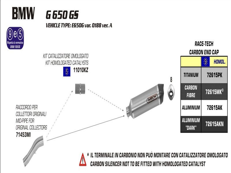 ARROW RACE-TECH BMW G 650 GS 2011/2012 SILENCIOSO HOMOLOGADO EN ALUMINIO CONVENCIONAL CON COPA DE CARBONO REF: 72615AK.