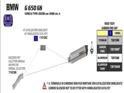 ARROW RACE-TECH BMW G 650 GS- SERTAO 2011/2012 SILENCIOSO HOMOLOGADO EN ALUMINIO NEGRO CON COPA DE CARBONO REF: 72615AKN.