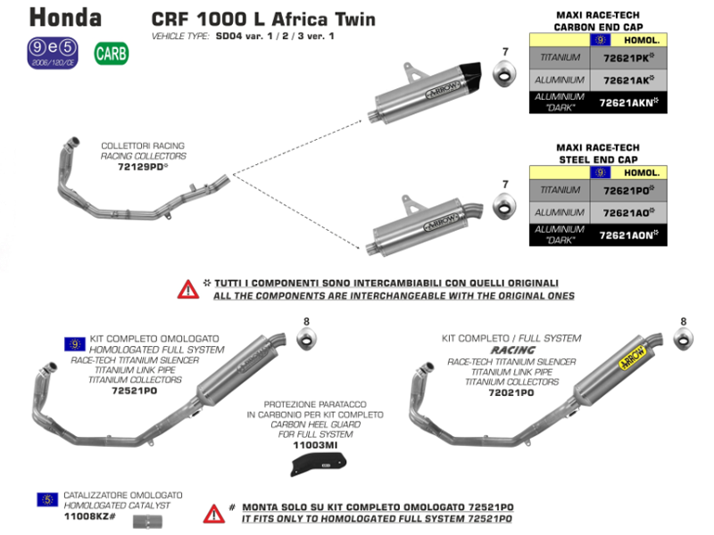 Silencioso Escape Slip-On Maxi Race-Tech Arrow 72621AO Honda CRF 1000 L Africa Twin 2016 Aluminio. Diseñado para las motos con silenciosos de serie grandes, el Maxi-Race tech de Arrow 72621AO se caracteriza por su sonido suave y por ofrecer un flujo de gases más dinámico. Homologado por la UE. El Db-killer es completamente extraíble de forma sencilla y rápida. El escape Arrow 72621AO está diseñado para la nueva Honda Africa Twin 2016 y se adapta a los colectores originales.