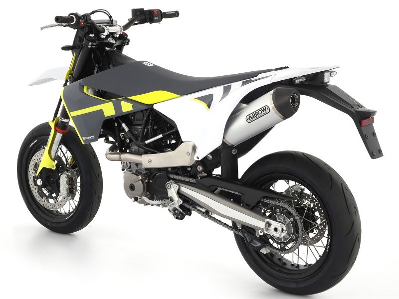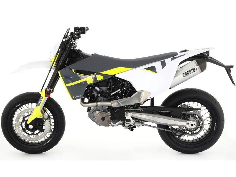 Pack ahorro Arrow escape específico para Husqvarna 701 Supermoto 2017-2020. El pack incluye el conector obligatorio 72143PD o 72143KZ y el silencioso 72623AK, 72623AKN o 72623PK. Elige tu combinación ideal!