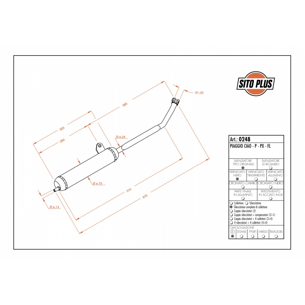 Escape Leovince 0248 SITOPLUS PIAGGIO CIAO P PX CIAO FL 50. Escape completo Leovince 0248 de la gama SITOPLUS con diseño y prestaciones similares al escape de serie. Diseñado para los ciclomotores y scooters mas vendidos de Europa, el escape Leovince SITOPLUS posee un interior completamente rediseñado para garantizar un alto rendimiento del motor, principalmente en baja y media revoluciónes.