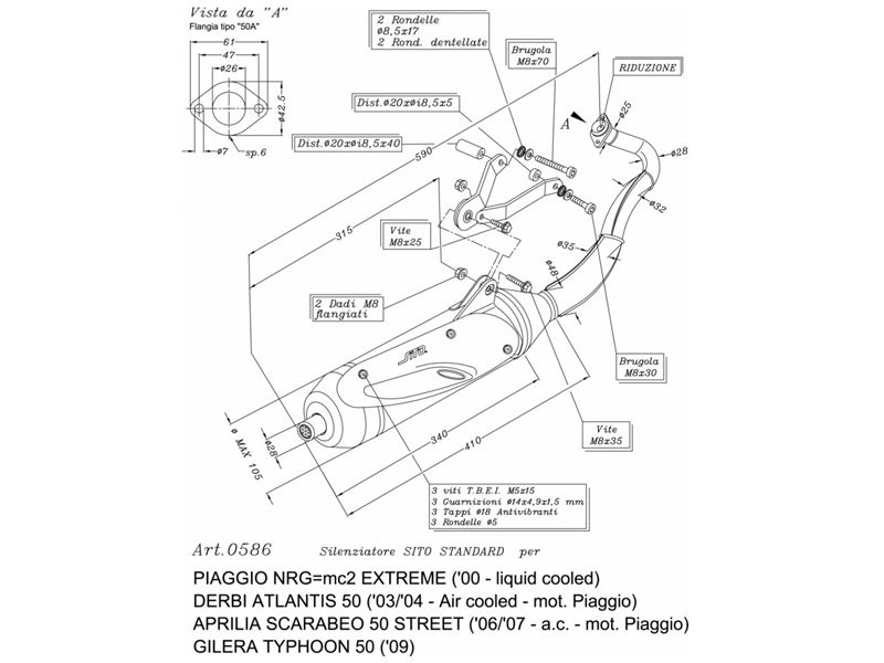 Escape Leovince 0586 SITO PIAGGIO NRG mc2 EXTREME liquid cooled TYPHOON 50. Escape completo Leovince 0586 pertenece a la gama SITO y está realizado con un acero especial, empleando una tecnología de construcción a doble cámara. El silenciador interno es completamente independiente de la estructura exterior. La pintura especial negro mate ofrece una excelente resistencia a las altas temperaturas.